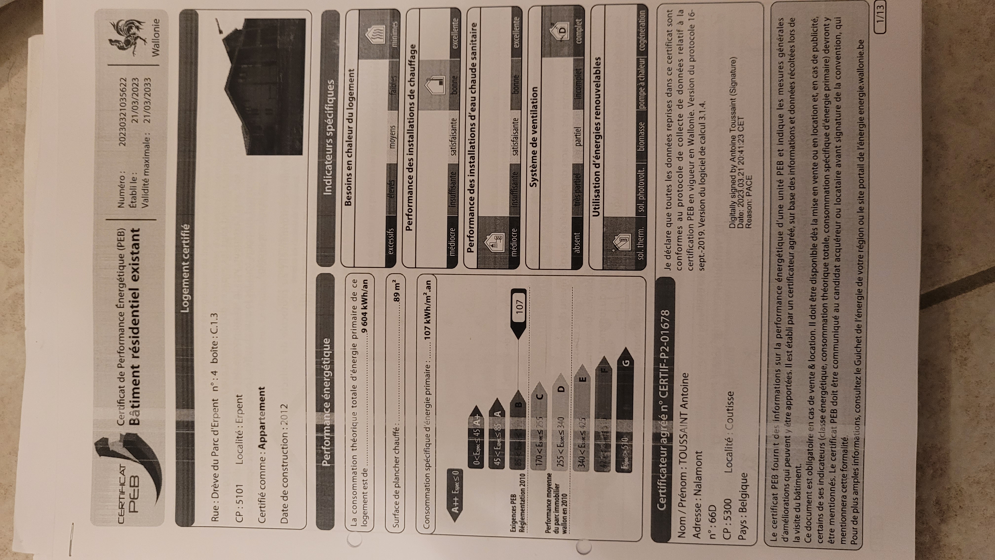 Téléchargez la première page du PEB Téléchargez le règlement d'ordre intérieur Téléchargez le croquis détaillé Téléchargez le descriptifDétail